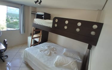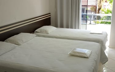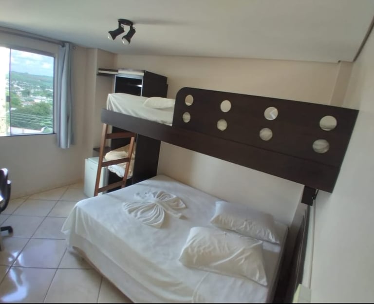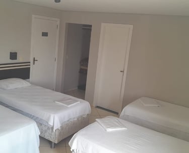 Ideal para famílias ou pequenos grupos, o Quarto Luxo Triplo oferece conforto, espaço e tranquilidade. Ambiente moderno, bem iluminado e preparado para uma estadia agradável, com excelente custo-benefício.