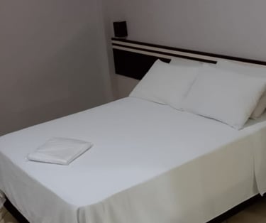 Quarto confortável, ideal para quem busca tranquilidade e limpeza impecável.