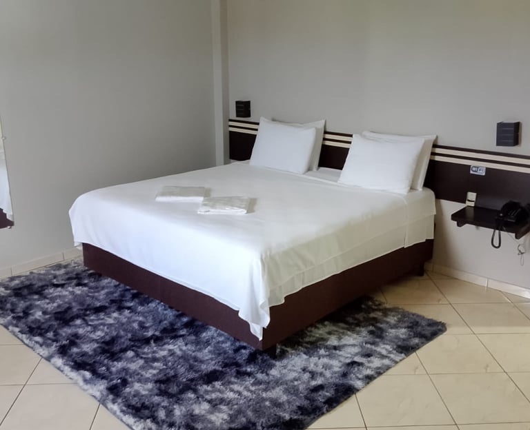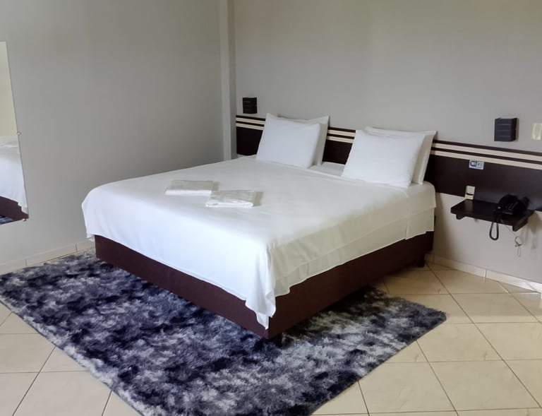 Conforto e praticidade para quem viaja a trabalho ou a lazer. O Quarto Executivo oferece um ambiente aconchegante, moderno e silencioso, ideal para descansar com tranquilidade e excelente custo-benefício.